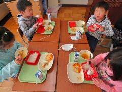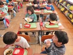 とてもおいしく食べています。やっぱり、みんなで食べる給食はおいしさ倍増ですね!