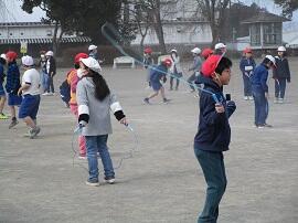 業間休み(マッスルタイム)は、全校で縄跳びをしました。