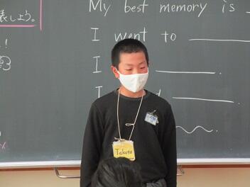 本日、6年生の英語の時間に、子どもたちが、6年生の思い出を英語で発表しました。修学旅行でのことや、持久走大会のことなどを、基本的な文型にしたがって発表することができました。
