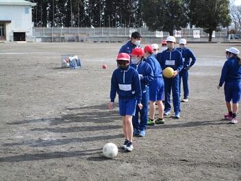 本日、2校時目に5-3 3校時に5-1 4校時に5-2がフットゴルフの体験をしました。