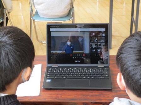 代表以外の児童の皆さんは、オンラインで教室から参加しました。