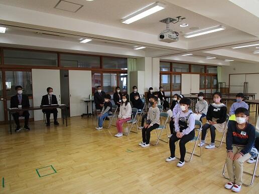 代表児童のみが多目的室に集合しました。