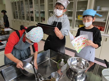 5年生が調理実習を行いました。慣れた手つきでお米を研いでいる子もいました。
