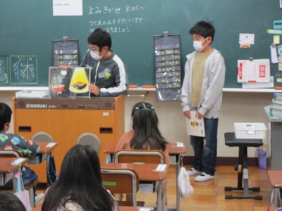 読み聞かせ2回目となる図書委員は、1回目よりもさらに上手に読んで聞かせることができました。