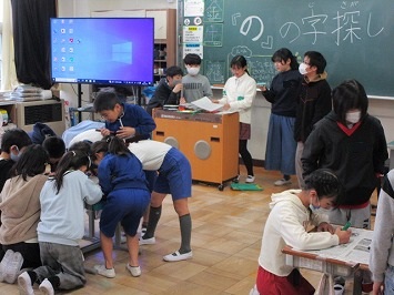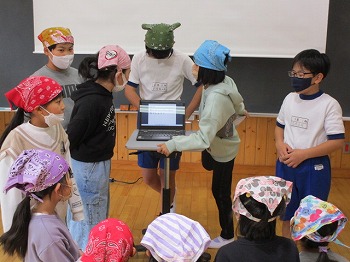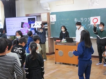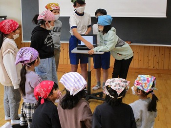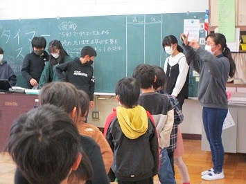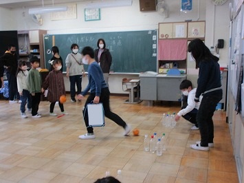 委員の5・6年生は、やさしく丁寧に遊び方を教えたり、「上手だね」とほめたり、なぞなぞの問題を出したり……。