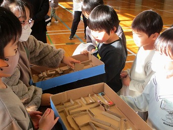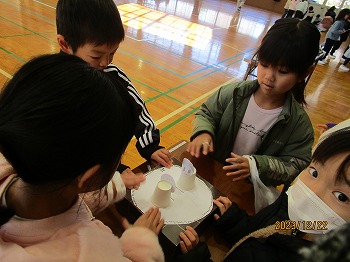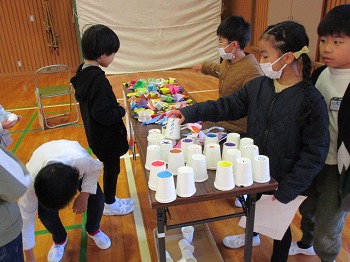 ゃや折り紙の景品で1年生を楽しませていました。2年生のお兄さん、お姉さんとなっている姿から成長を感じました。