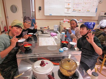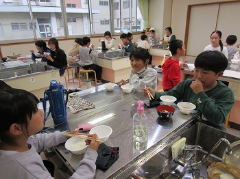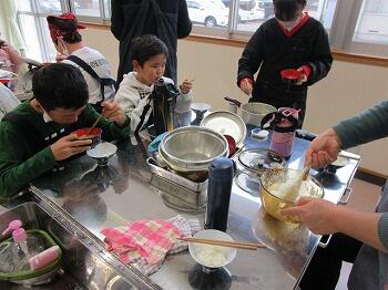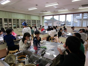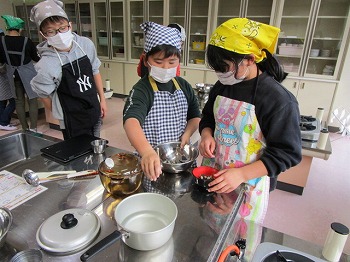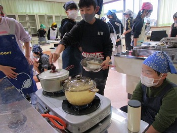 5年生が調理実習を行いました。慣れた手つきでお米を研いでいる子もいました。
