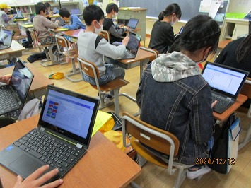 6年生:理科で、必要なときに明かりをつける「プログラミング」を体験していました。社会科では、「アジア・太平洋に広がる戦争」の学習で、その歴史について真剣に考えていました。