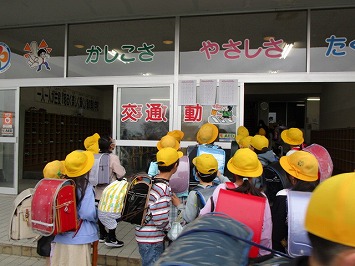 さらに、下校時には担当教員が地区ごに班を見守り、下校時の実際の場面での指導と確認をしました。交通安全教室で学習したことを実践で生かしていました。一つしかない命、一人しかいない自分を大切にしてほしいです。