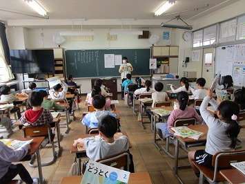 新学期2日目です。子どもたちは、担任の健康観察の呼名に「はい、元気です」と元気たっぷりに返事をしていました。