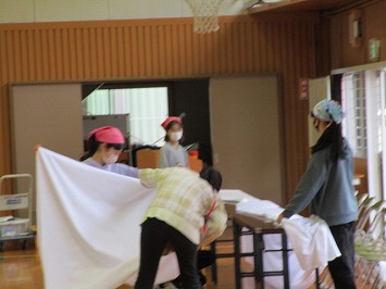 明日の入学式の準備を6年生と教職員で行いました。会場の椅子の準備やテーブルの白布掛け、玄関の掃除など、6生は手際よく、黙々と心を込めて働きました。