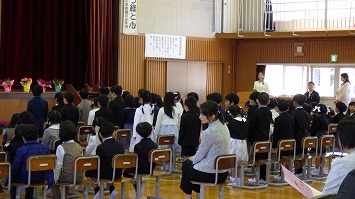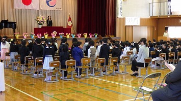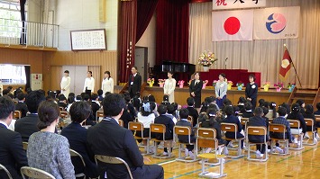 教育委員会教育委員様、副市長様、議会議員様、PTA役員の方々、地域でお世話になっている方々にご臨席いただき、かわいい1年生を迎えることができました。1年生は、担任からの呼名に元気よく「はい」と返事ができました。