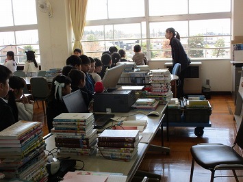 図書室を中心に、地域ボランティアと連携した読み聞かせや図書の整理、図書委員によるイベントや読み聞かせを行っています。また、教科書関連本を整備したり市の図書館からの団体貸し出しをいただいたりし、学習指導に活用しています。