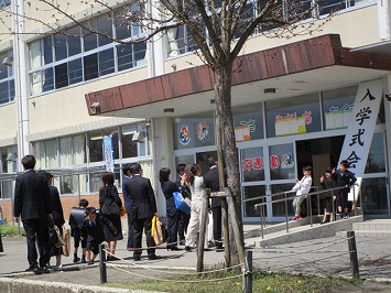 満開の桜の花に迎えられ、106名の1年生が入学しました。