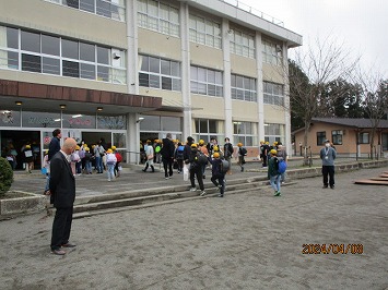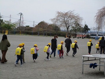 下校班の並び方も練習しました。安全な下校を指導します。お迎え当番もお世話になります。