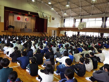 始業式では、校長から「自信をもって自分の考えを伝えよう」「元気なあいさつをしよう」「命や体を大切にしよう」と3つのお願いをしました。