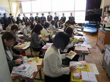 1年間お世話になる先生方とあいさつをし、各教室では、早速、自己紹介や荷物の整頓、教科書で勉強する内容などを確認していました。
