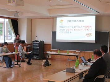 5月15日(水)第1回学校運営協議会を行いました。まず、学校運営協議会の役割から、学校教育目標や学校経営ビジョン、教育活動の様子をお伝えし、学校運営に関する基本方針を承認していただきました。