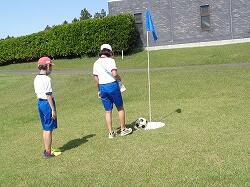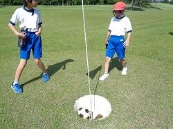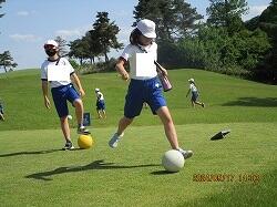 広いゴルフ場で緑に囲まれながら行うフットゴルフは、学校の校庭で体験したフットゴルフとはまた違う楽しさがあります。