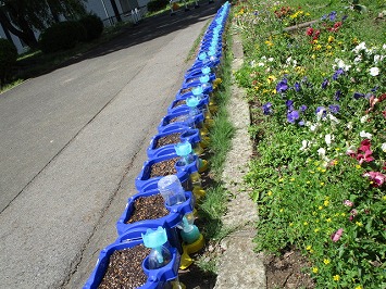 毎日、休み時間にお水を上げたり、観察をしたりしています。大きくなるのが楽しみです。