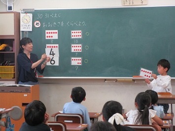 1年生の貸し出しも始まりました。「○○という本は、どこにありますか」と、図書室の先生に積極的に聞いている子もいます。上級生が下級生をお手伝いしている光景もあリます。