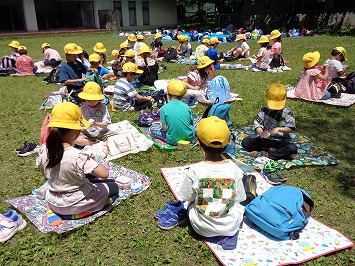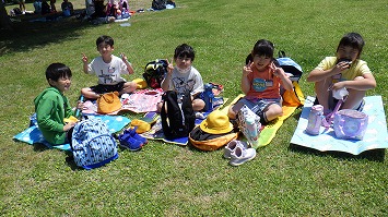 青空の下で食べるお弁当は、とってもおいしかったです。