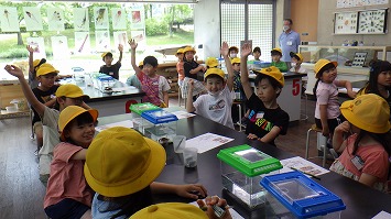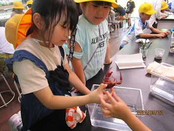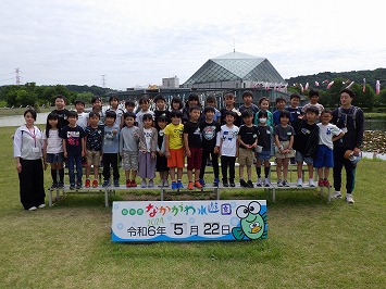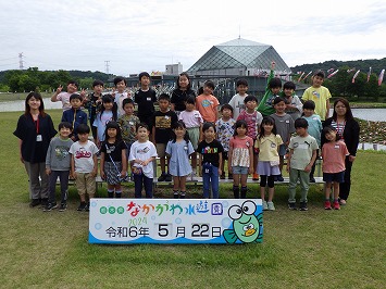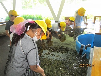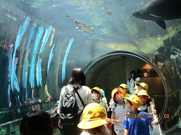 2年生は、なかがわ水遊園に行きました。水族館では大きな魚を見たり、珍しい生き物に触れたりしました。
