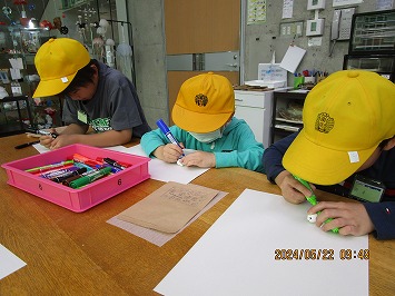 生き物ペイントでは、マジックで陶器に色づけをし、お土産にしました。天気もよかったので、外のアスレチックでも、とっても楽しく活動できました。