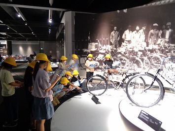 クイズラリーは、班のみんなで知恵を合わせてクイズを解きました。車やバイク、飛行機などの展示を見学し、歴史を知ることができました。