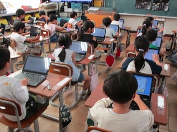 1年生:クロムブックで週末課題の確かめをしたり算数の計算問題にチャレンジしたりすることに慣れてきました。運動会で表現するダンスの練習も一生懸命です。