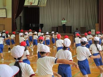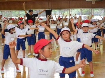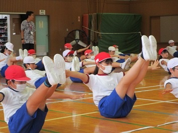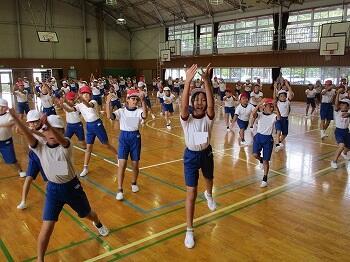 4年生は、体育館で運動会の練習を行いました。元気に「よっちょれソーラン」を踊りました。