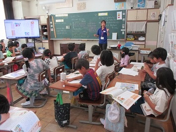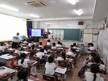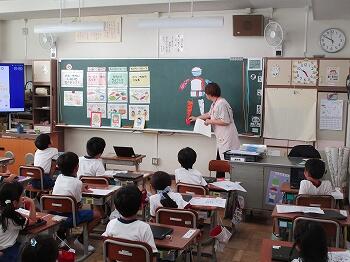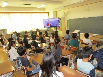 1年生は、学級活動の時間で、栄養士の先生から、体を作る栄養について学習しました。少し難しい学習でしたが、みんな真剣に話を聞いていました。