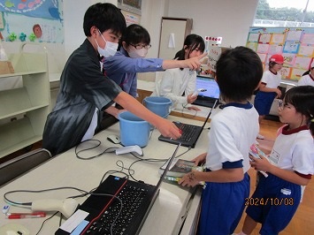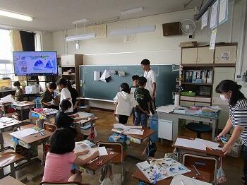 子どもたちの疑問や質問にも丁寧に答えていただきました。子どもたちは、見たり聞いたり感じたりしたことを一生懸命メモしていました。