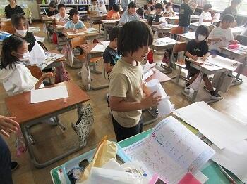 4年生:社会科では水害から命を守るための準備としてさくら市のハザードマップを参考に防災メモを作成しました。理科では空気鉄砲を使って、閉じ込めた空気の性質を調べる計画を立てました。