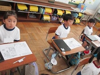 1年生:運動会で楽しかったことを絵や文で表していました。国語「くじらぐも」では読み方の工夫を考えて音読していました。