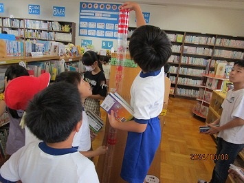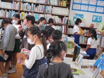 休み時間は静かに読書に親しむ子も多くいます。どの本を借りようかと楽しみながら本を選んでいました。