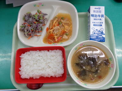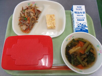 今日は、ひじきと豆のサラダがでました。ひじきの成分の約40%は食物繊維で、腸の働きを高め、有害物質を体の外へ出す効果があります。カルシウムやマグネシウムなどのミネラルも含んでいるので、上手に取り入れたい食品ですね。