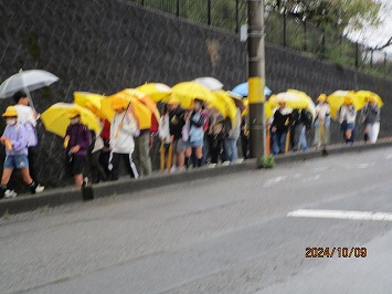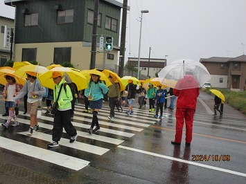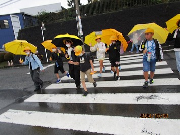 対面式後は、傘を差しての下校となりましたが、しっかり交通ルールを守って下校することができました。