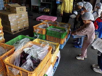 担当の方からスライドや資料を使って。漬物を作られる順序や運ばれていく場所、環境を守るための工夫などについて、スライドや資料を使って、わかりやすく説明していただきました。工場の中も見学させていただききました。