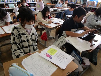 3年生:国語「ちいちゃんのかげおくり」最後の場面を読み取りグループで意見を交流しました。また、図書室を活用して、1年生に読み聞かせをする本を選びました。