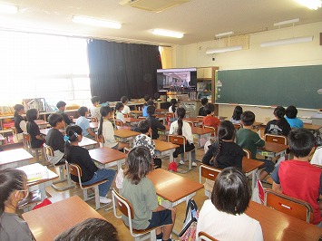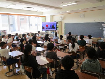 いつも子どもたちの登下校を見守ってくださっているスクールガード「君を守り隊」の方々においでいただき、対面式を行いました。生憎の雨だったので、オンラインでの対面となりました。