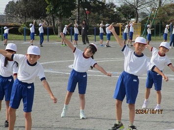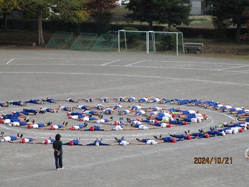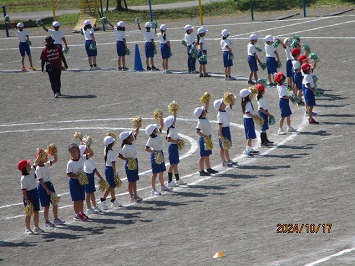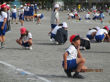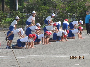表現運動(低学年ダンス、中学年:ソーラン、高学年:組体操)は、赤組・白組の競い合いではなく、学年やブロックが心を一つに演技している様子がうかがえます。日を追うごとに完成度が増しています。