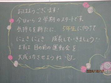 2学期は、26日(土)の運動会や11月の持久走記録会、5・6年生は市の駅伝競走大会、読書週間、ふれ合い体験教室など、日常の学習に加え、さまざまな行事があります。南小学校の子どもがこれらを通し、さらに「成長」する2学期となることを期待しています。