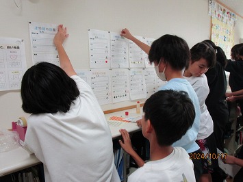2学期の目標や係活動について、じっくり考え意見を出し合っていました。