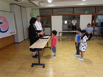 代表の児童から「スクールガードの皆さんに見守っていただいているお陰で、毎日安心して登下校できています。感謝の気持ちで一杯です。これからも見守っていただけたらうれしです。」と感謝の言葉と安全に登下校することを伝えました。