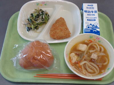 バターロールパン 牛乳 かぼちゃフライ 千草和え けんちんうどん