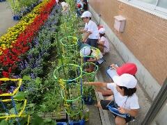 大きくなるのが楽しみです。どの子も、自分の育てている野菜を見てほしくて声を掛けてきます。「2年生のやさい、大きくなぁ~れ!」