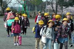 「親子で、登校の練習。桜の木の下で温もりを感じました。」