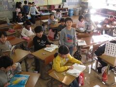 本校では、毎月一回、「アリスの会」「民話の会」「読み聞かせボランティア」の方々による読み聞かせをが朝の時間にあります。