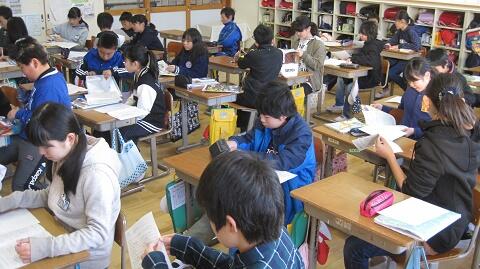 只今、「学習強化週間中」です。今日は、笠井先生が出張のため、小松先生が授業を進めています。代替の先生が授業を進めてくださるので、出張の先生も安心して研修に行けます。